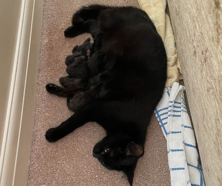 On 31st August 2023, Sophie gave birth to her kittens behind the sofa, creating an adorable scene of new life and love. Despite the unexpected circumstances, this amazing mummy cat is taking care of her babies with unwavering dedication.
